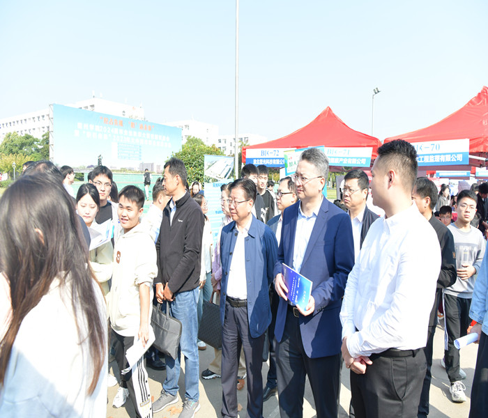 为贯彻落实党中央、国务院和省委、省政府关于做好高校毕业生就业工作的决策部署,更好地为2024届毕业生求职就业和用人单位招聘人才搭建对接平台,提供岗位精准匹配和就业指导服务,促进毕业生高质量充分就业,10月11日,我院与宿州市人社局联合举办2024届毕业生秋季大型校园双选会暨“职引未来”2023年大中城市联合招聘活动。院党委书记李红,党委副书记、院长李福华,党委副书记王俊,党委委员、副院长李亮,党委委员、副院长杨维志,党委委员、纪委书记、监察专员邢存海,以及宿州市人社局三级调研员谭晓硼、市人才服务中心主任赵志等深入招聘会现场,指导毕业生就业工作。